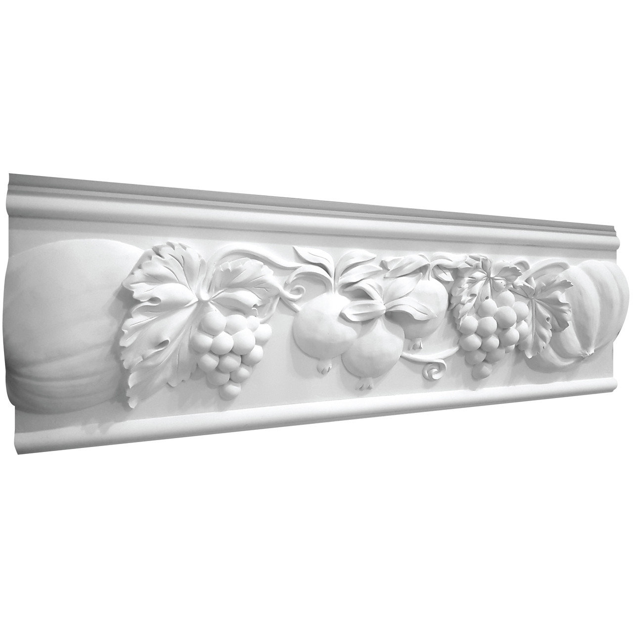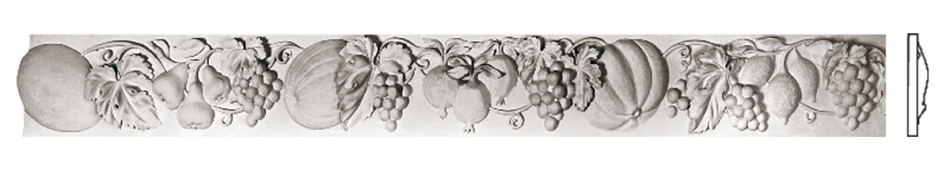 Ф‑123 — роскошный гипсовый фриз с плавным растительным орнаментом. Глубокий рельеф с гирляндами и свисающими элементами создаёт эффект мягкого движения и естественности. Композиция сочетает торжественность и лёгкость, придавая интерьеру благородный декоративный ритм.