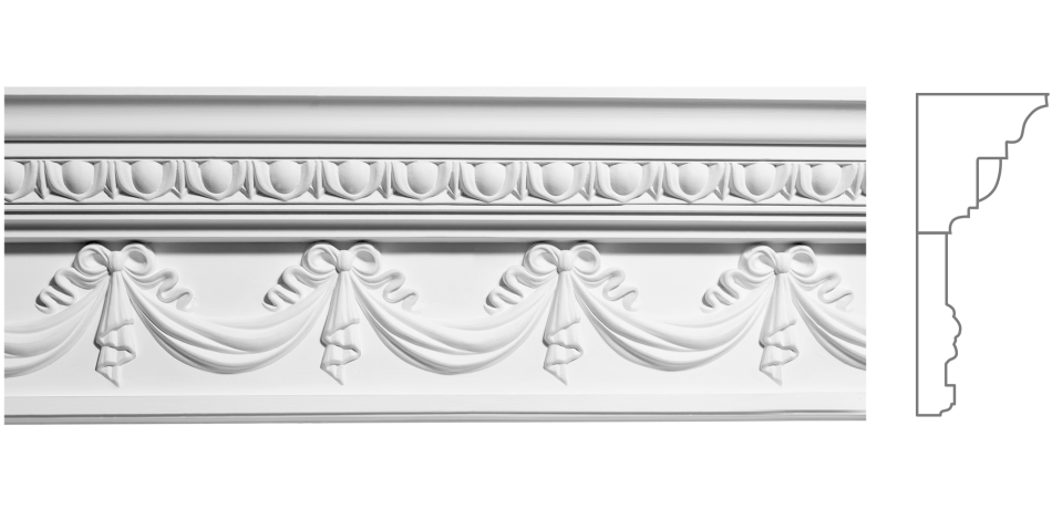 Карниз из гипса К-223 — элегантность с гирляндово-драпировочно-каплевидным орнаментом