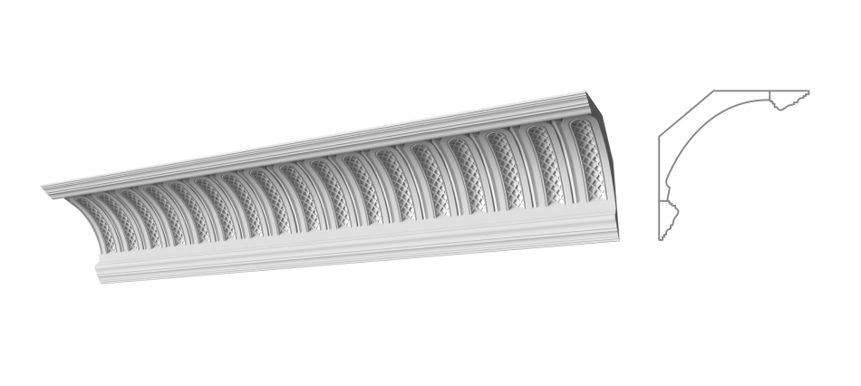 Карниз К-36a придаёт интерьеру монументальной барочной архитектурной роскоши. Его радиально-рифленые элементы и богатые органические формы акцентируют архитектурные детали, наделяя пространство ощущением художественного совершенства, дизайнерской изысканности и барочного величия. Идеально подходит для угловых образований и переходов.