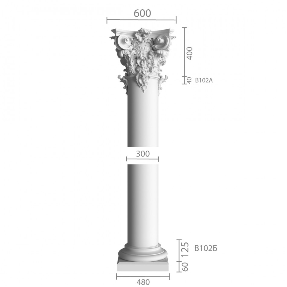 Капитель и база считаются отдельно. Высота ствола колонны изготавливается под размер заказчика.