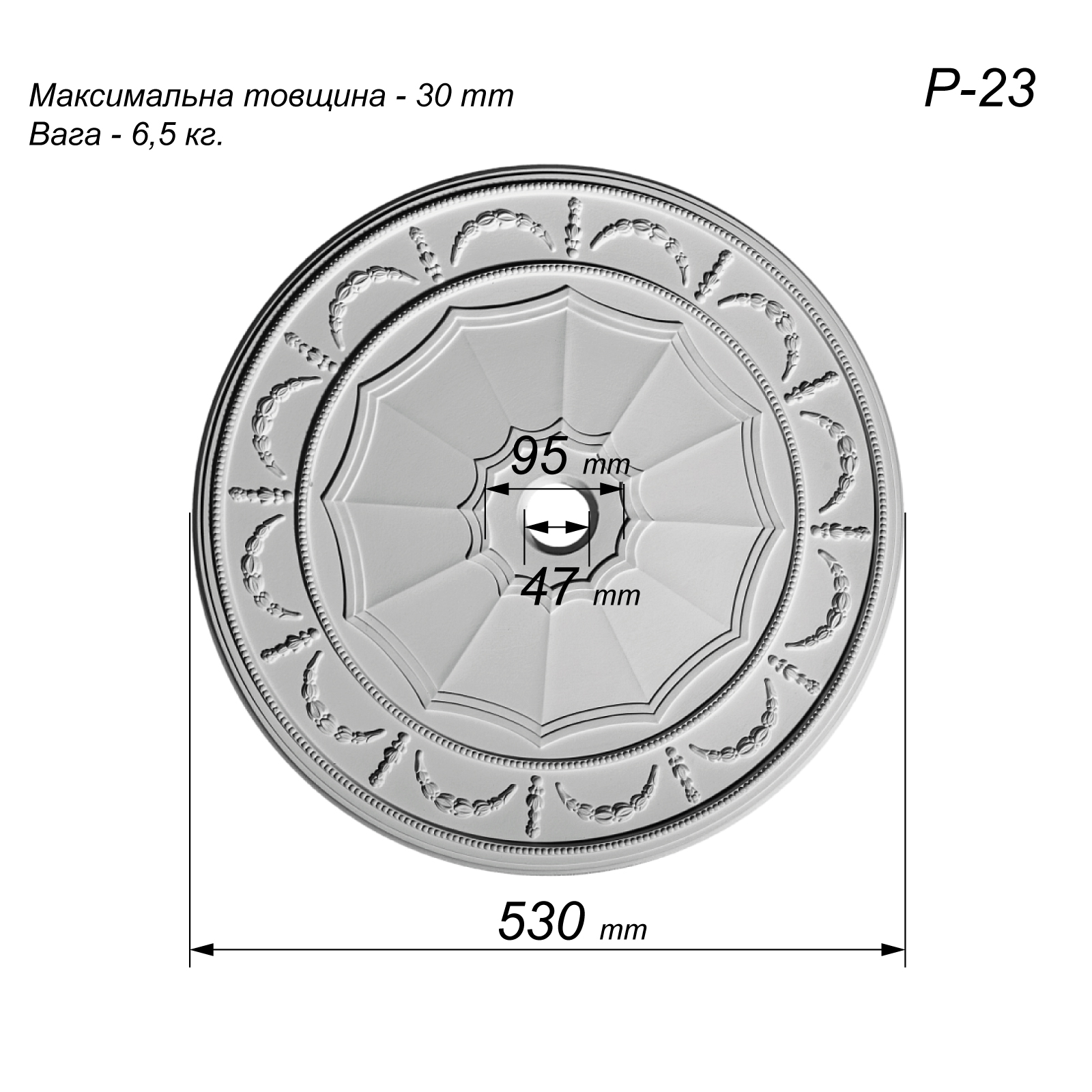 Розетка потолочная из гипса Р-23 диаметром Ø530 мм – можно сделав заказ на сайте
