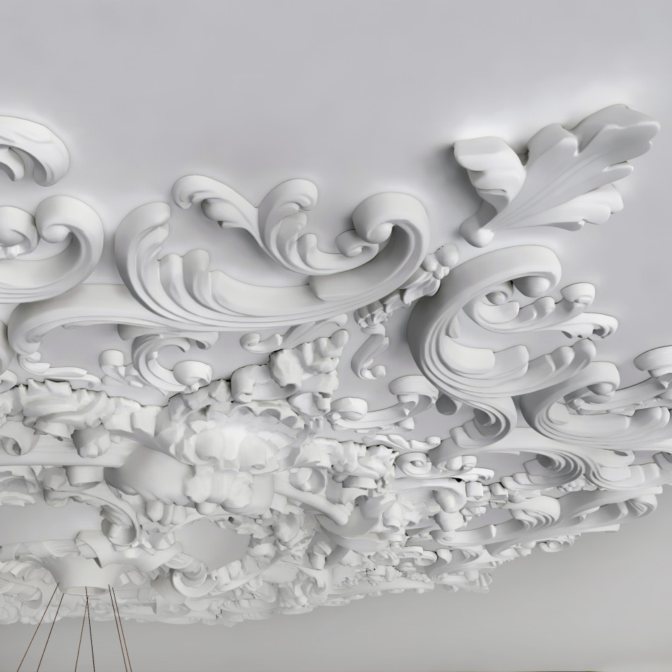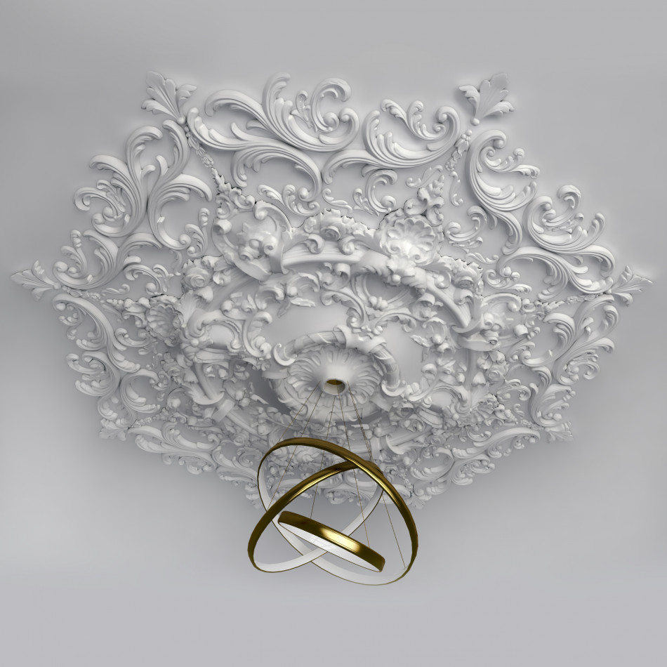 Это классический предмет гипсового декора, который используется для украшения интерьеров любых помещений - как небольших квартир до величественных соборов и огромных залов ресторанов. Она идеально впишется в помещения с невысокими потолками благодаря тонкости. Элементы композиции включают классические узоры с растительным орнаментом в форме цветов, что придаёт розетке характер изысканности и роскоши. Изысканный орнамент, богатый декоративными элементами, задаёт особое настроение всему помещению.