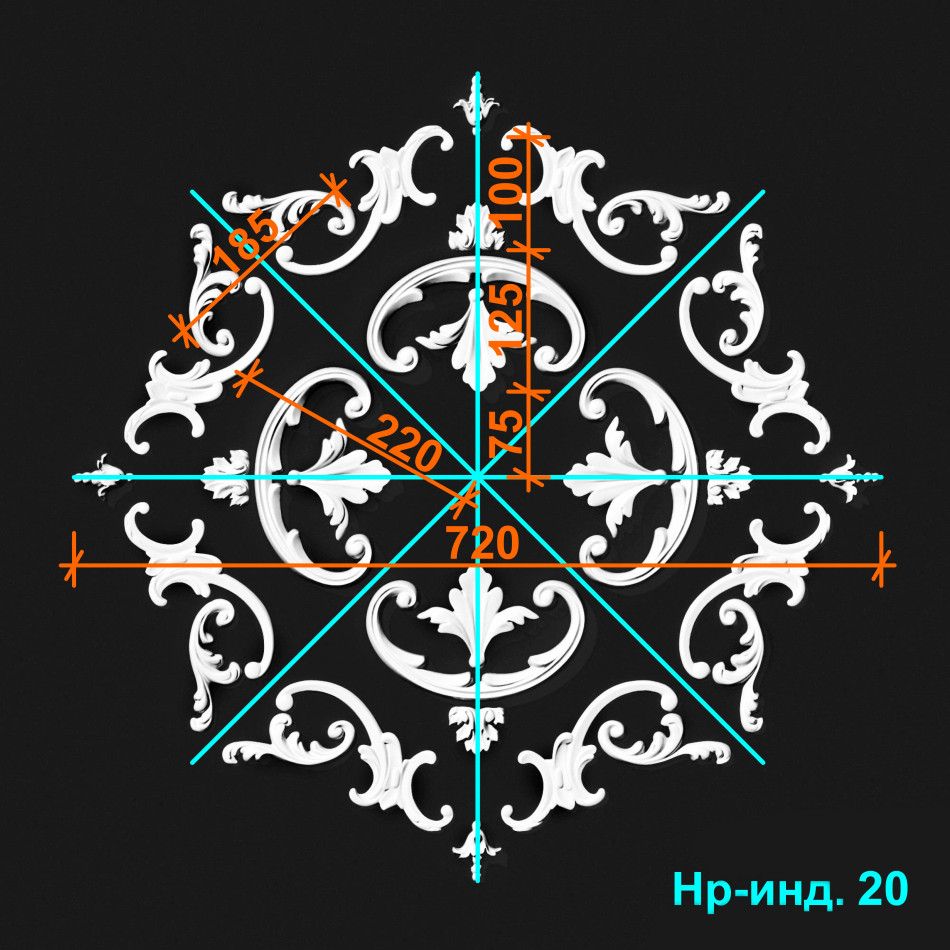 Наборная потолочная розетка Нр-инд. 20 в стиле классицизм, круглая, с диаметром 720 мм.