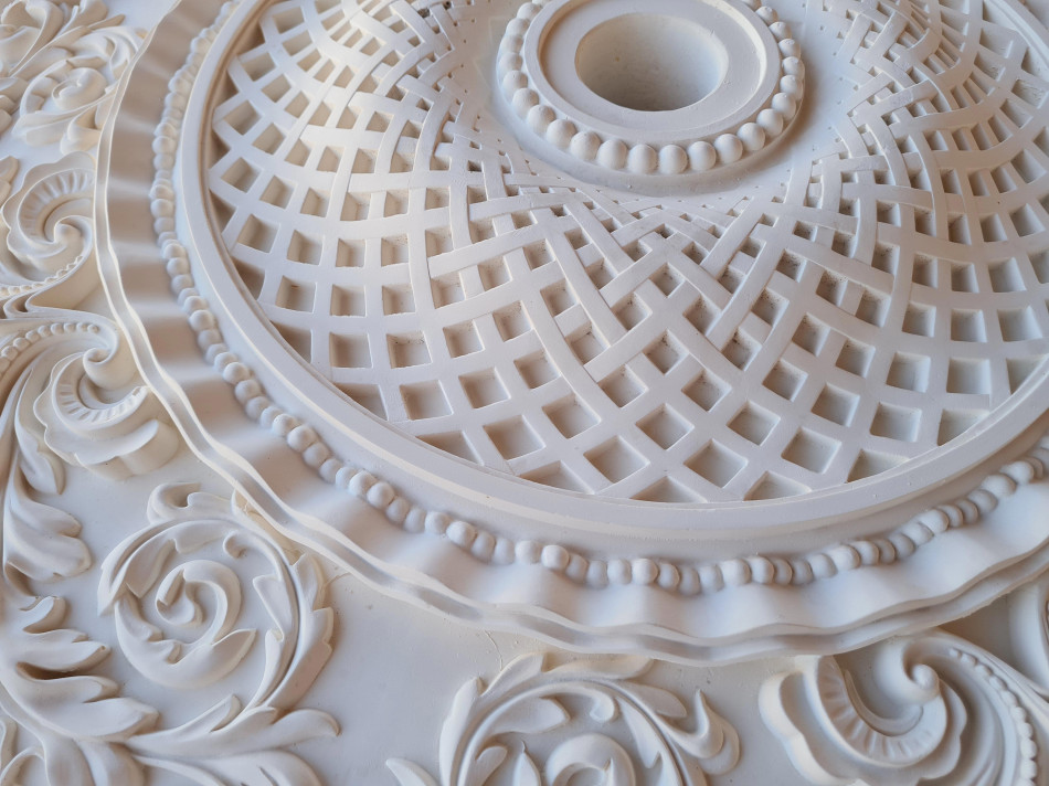 потолочный медальон гармонично сочетается в разных стилях. Потолочный декор из
