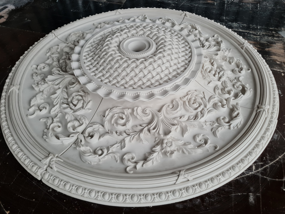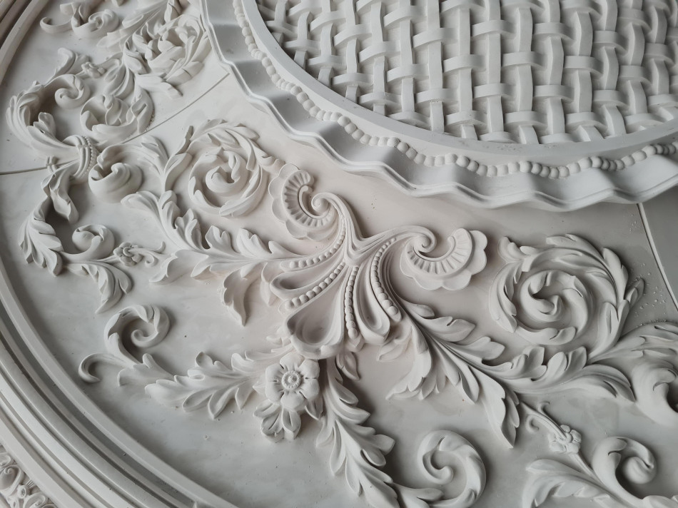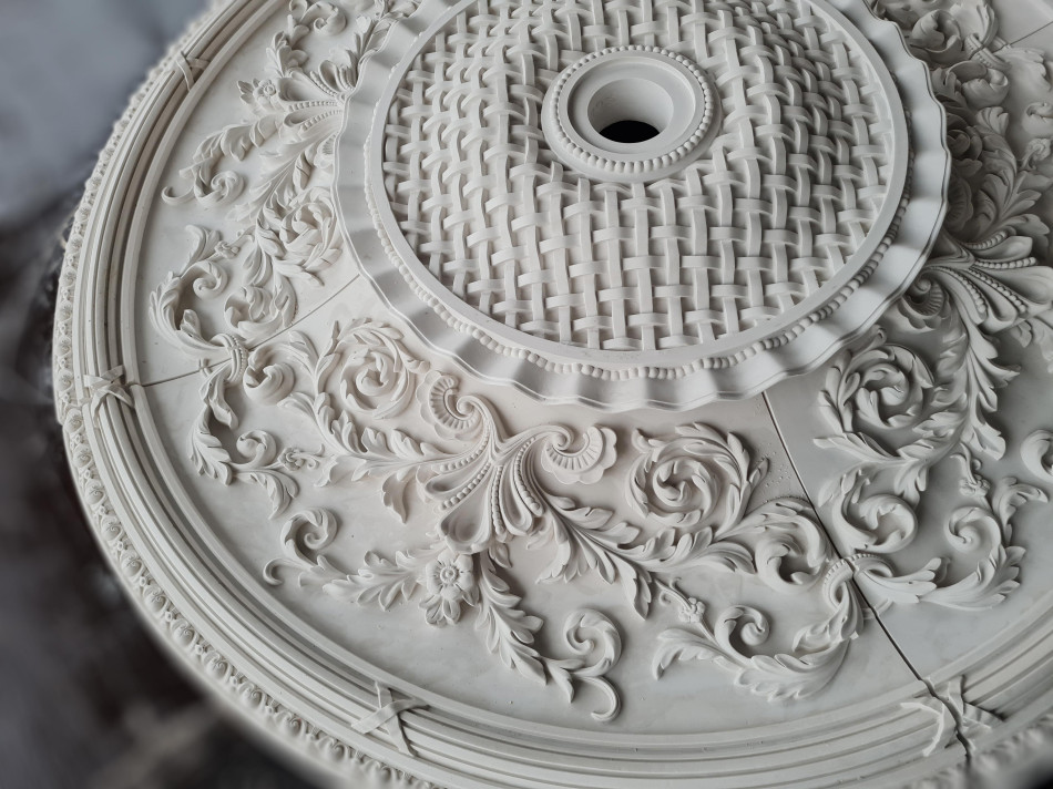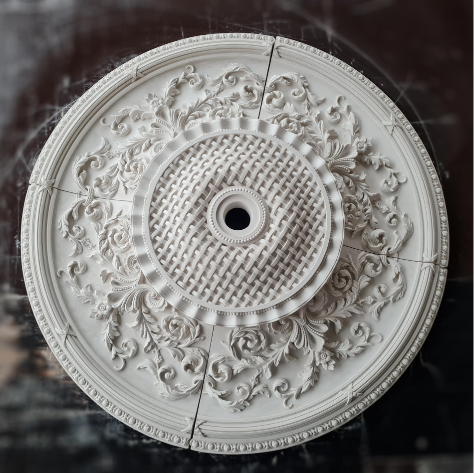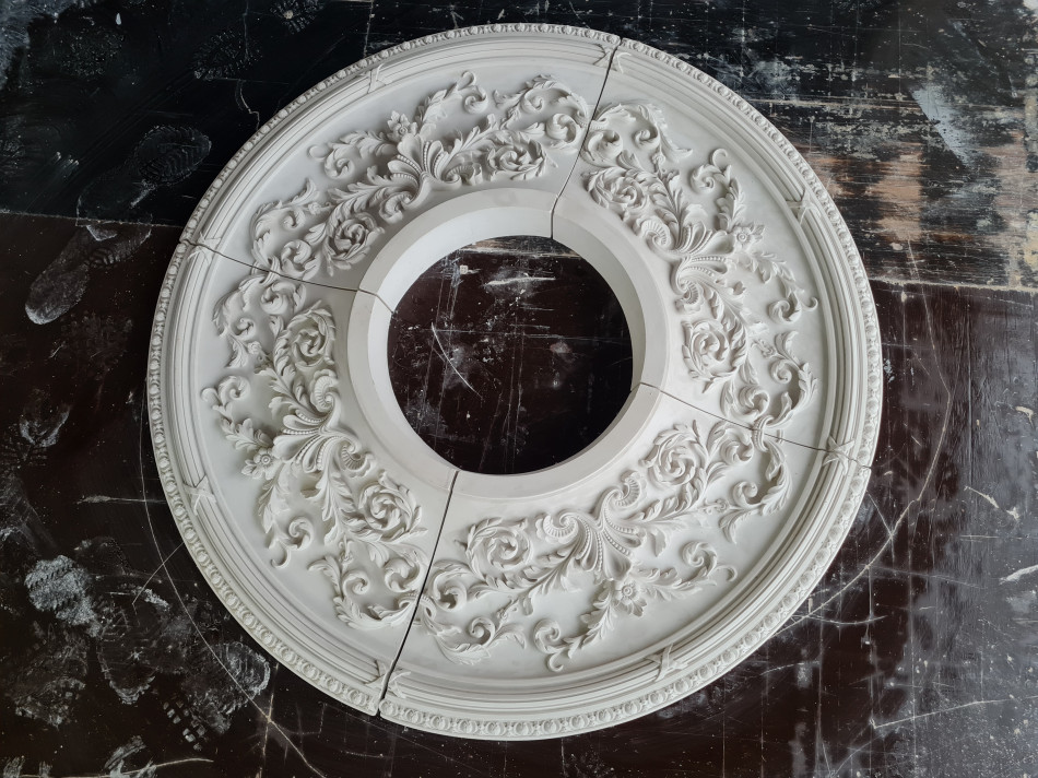 потолочный медальон гармонично сочетается в разных стилях. Потолочный декор из