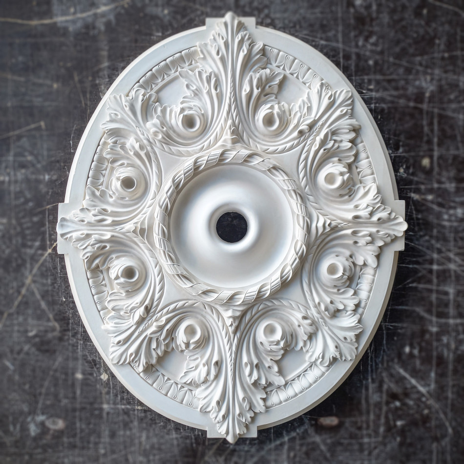 Розетка гипсовая с классическим рисунком овальной формы р-118 630х760