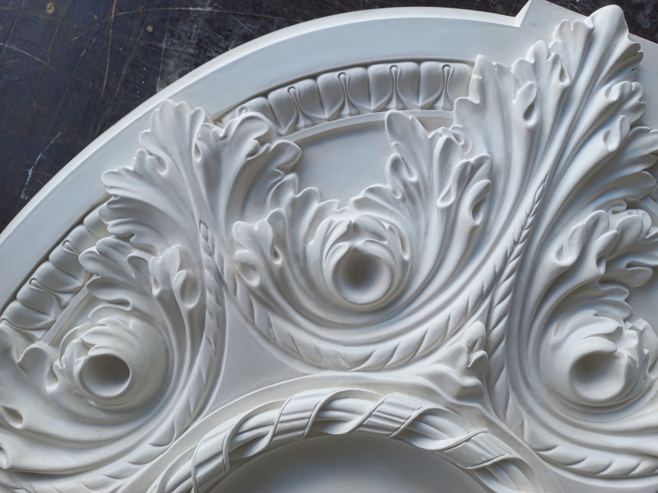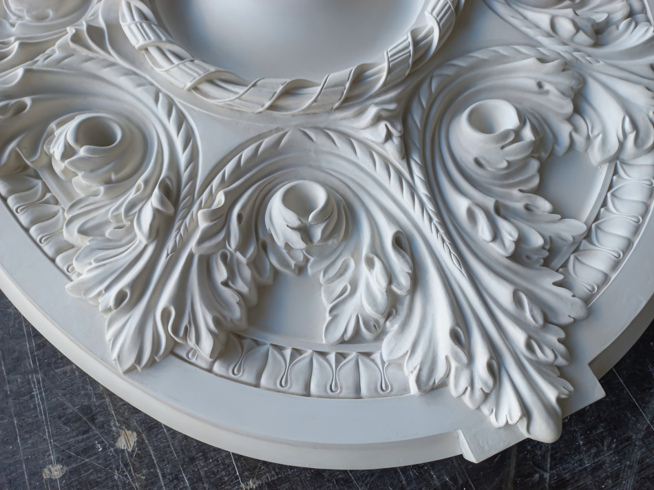 потолочный медальон гармонично сочетается в разных стилях. Потолочный декор из