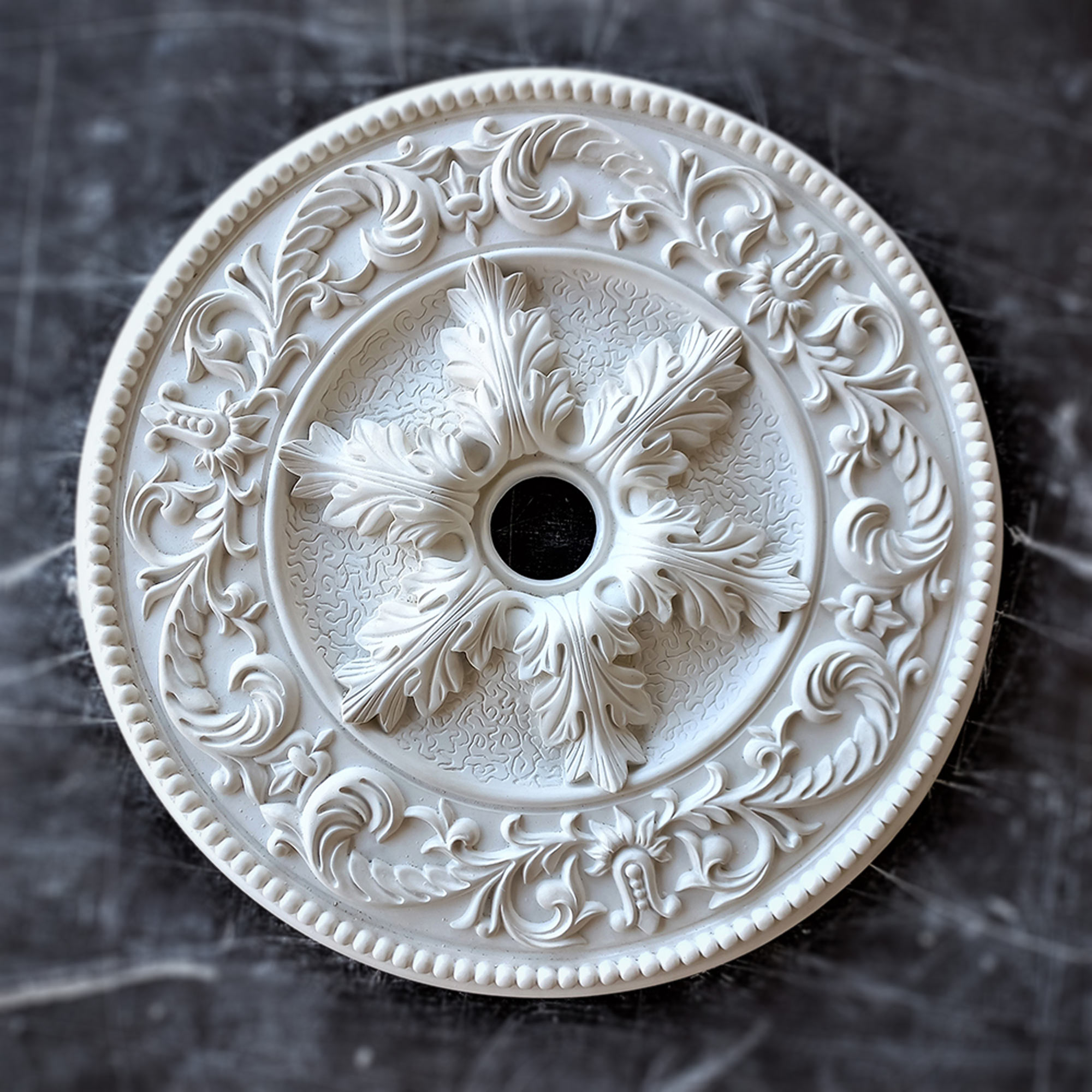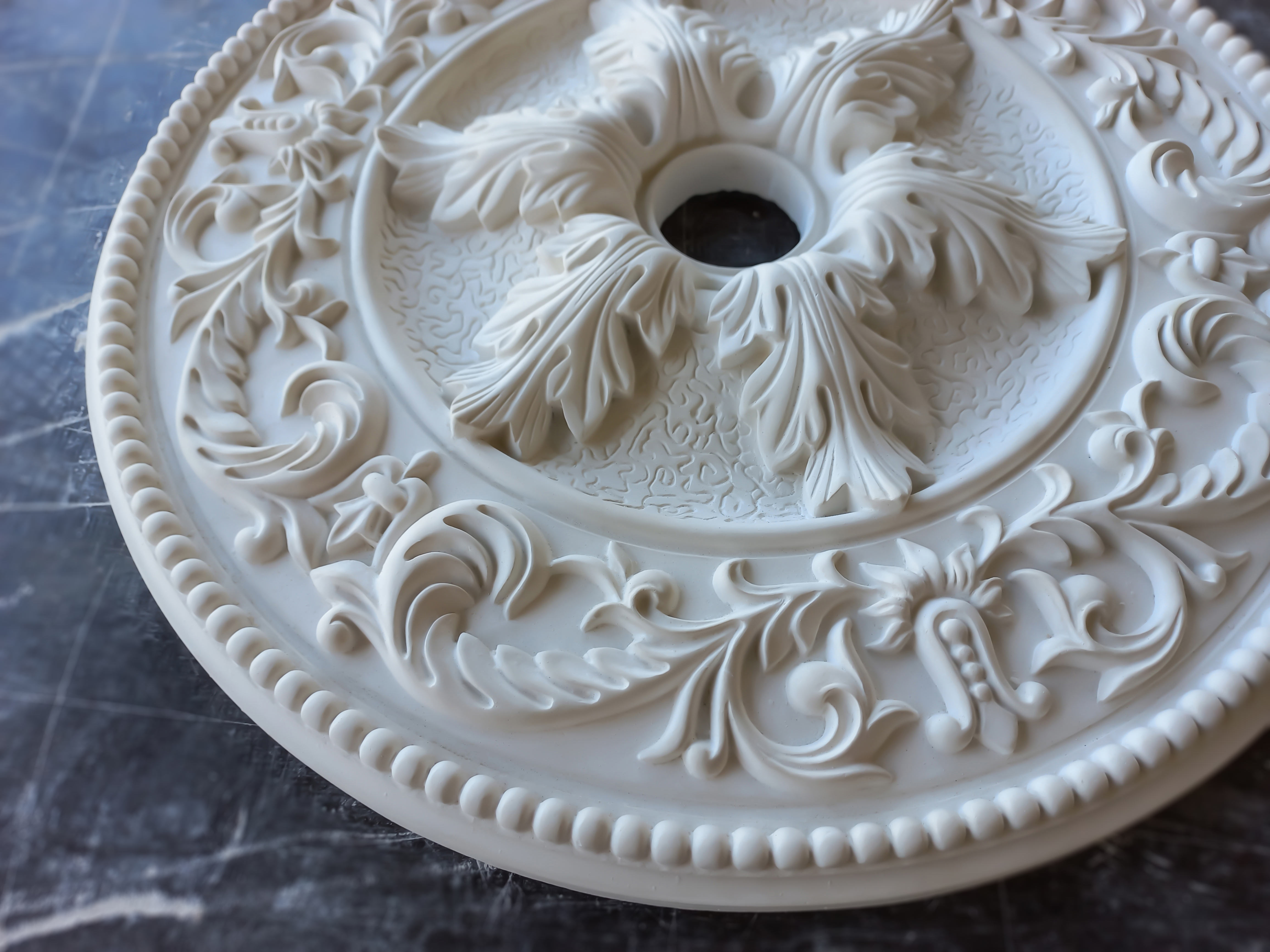 потолочный медальон гармонично сочетается в разных стилях. Потолочный декор из