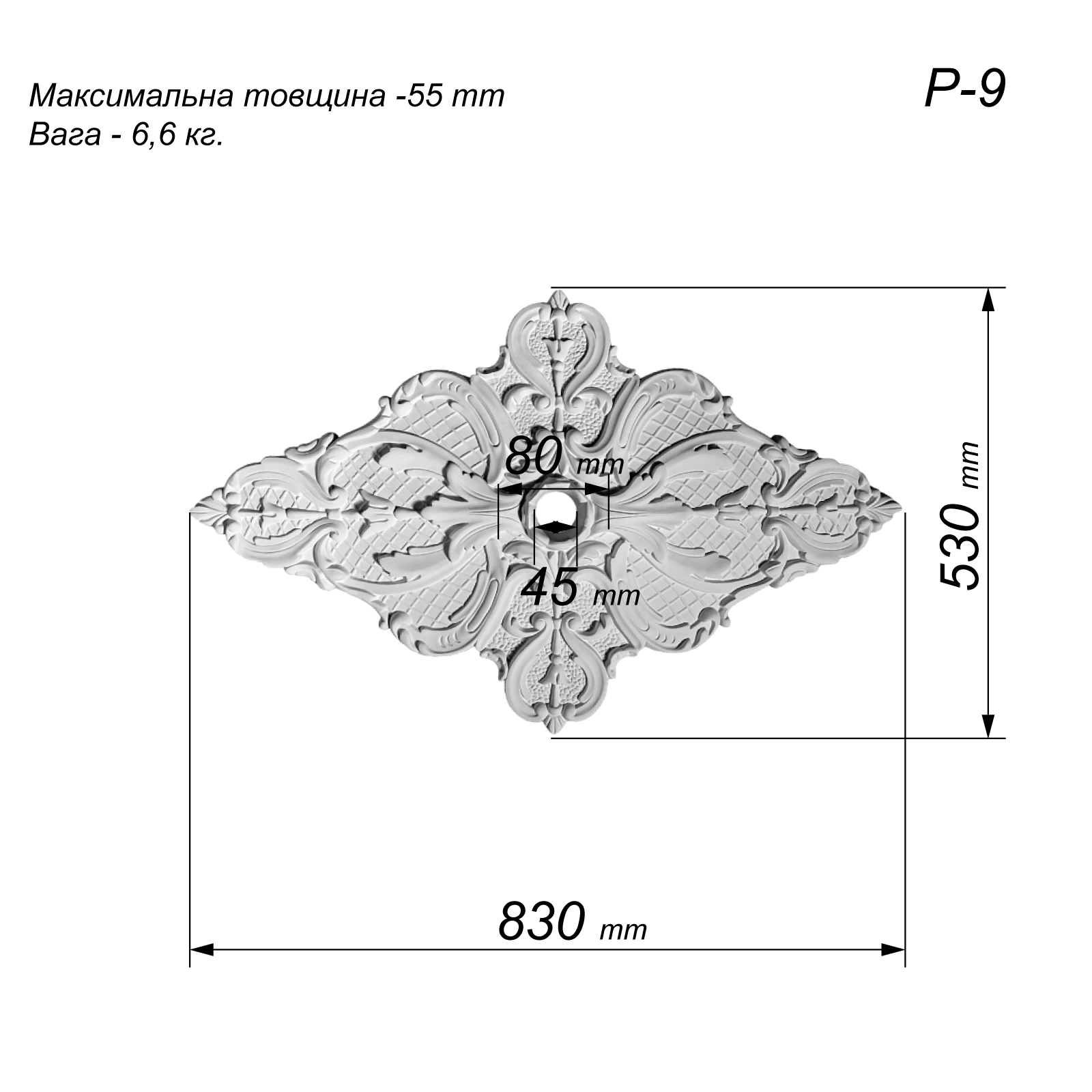 Купить Розетка ромбовидная из гипса р-9 830х530 – можно сделав заказ на сайте