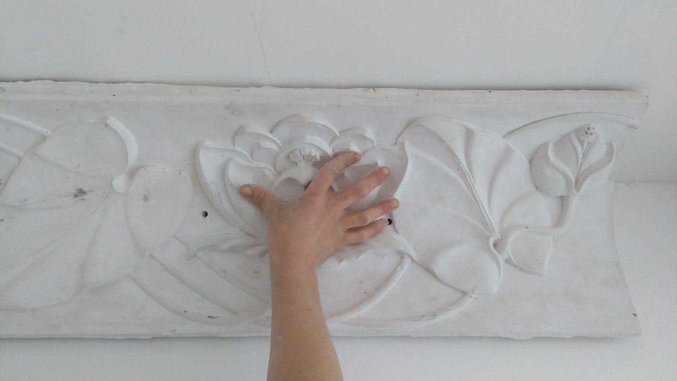 Высохший гипс имеет плохую адгезию. Чтобы материал лучше схватился со стеной или потолком, его предварительно смачивают водой из пульверизатора. Стоит соблюдать осторожность чтобы не повредить целостность хрупкого изделия.