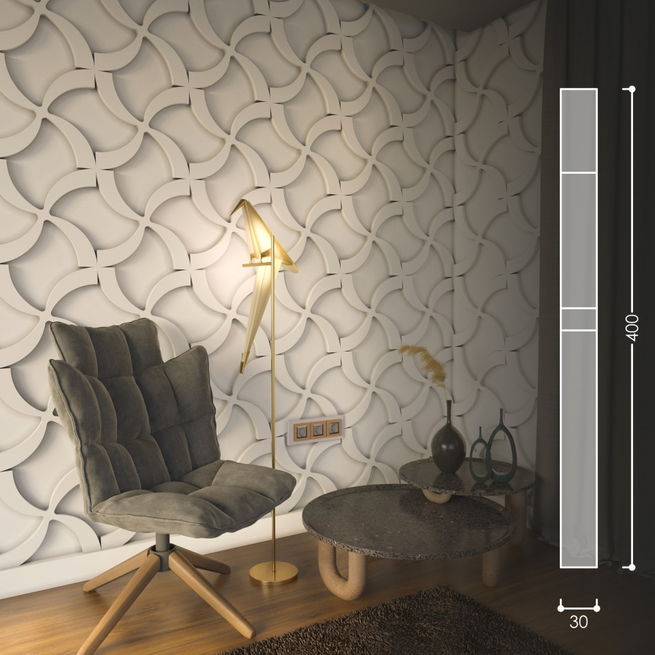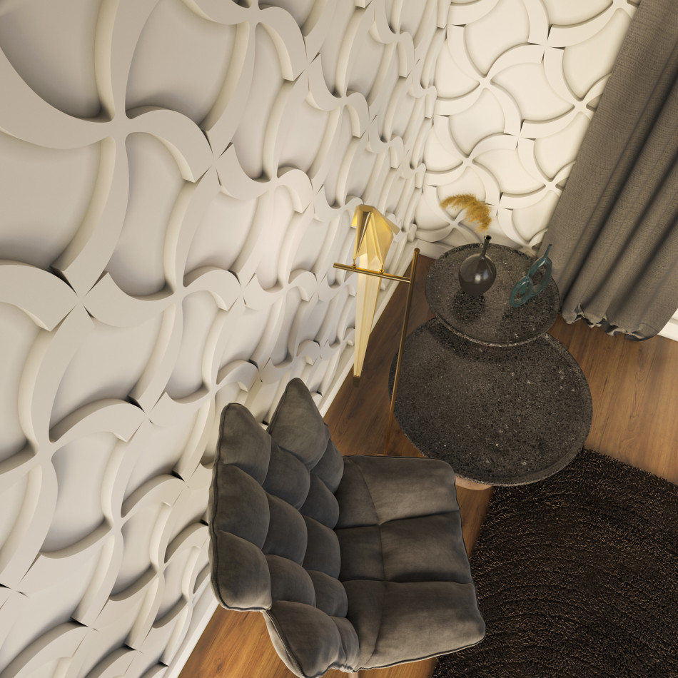 Гіпсові 3D панелі моделі Бумеранг пропонують захоплюючі можливості для створення неповторного і вражаючого інтер'єру. Їхня унікальна фактура додасть стінам не тільки візуальну привабливість, а й відчуття стилю та якості. Ви зможете створити затишну і витончену обстановку в будь-якому приміщенні, підкресливши його індивідуальність і елегантність завдяки цим гіпсовим 3D панелям моделі Бумеранг.