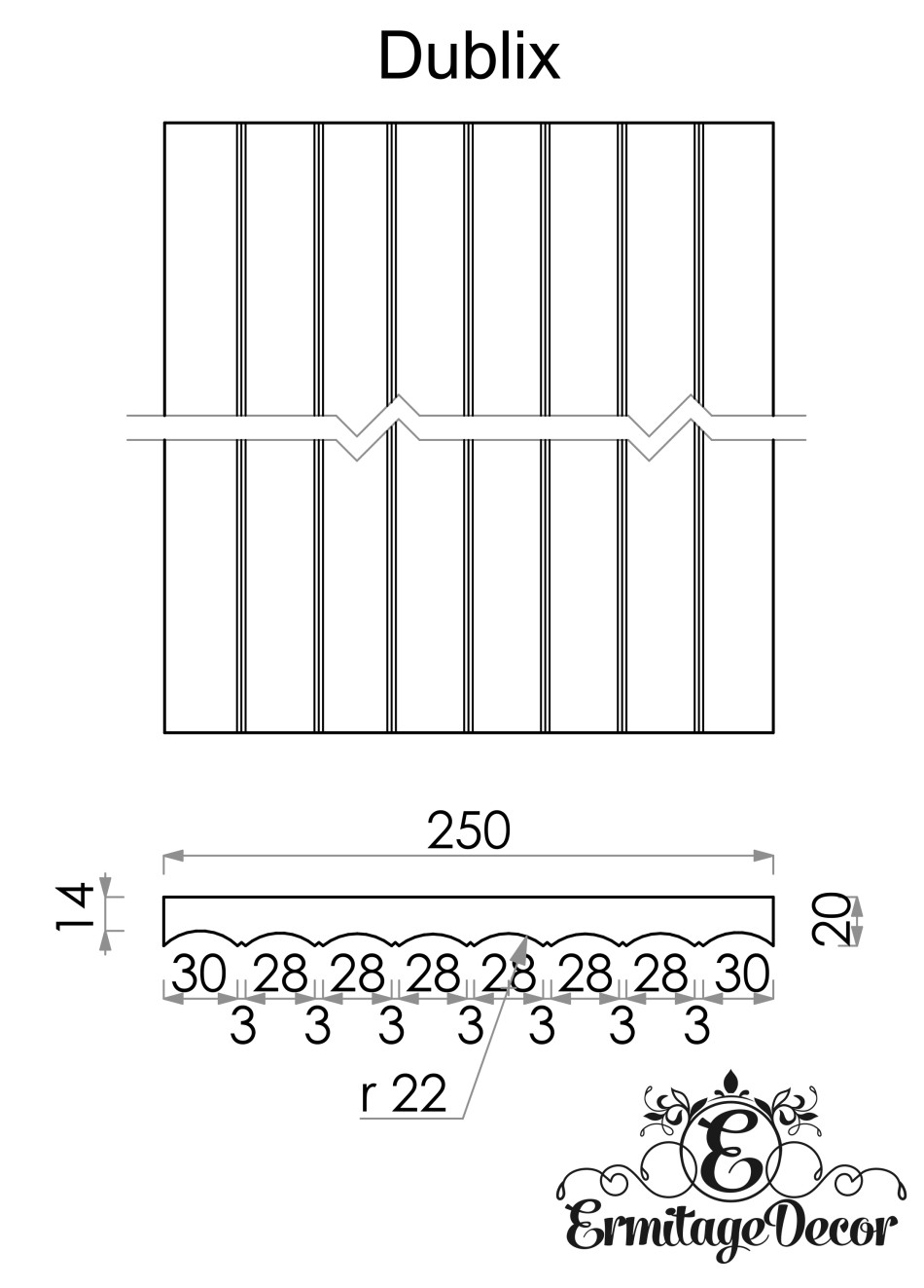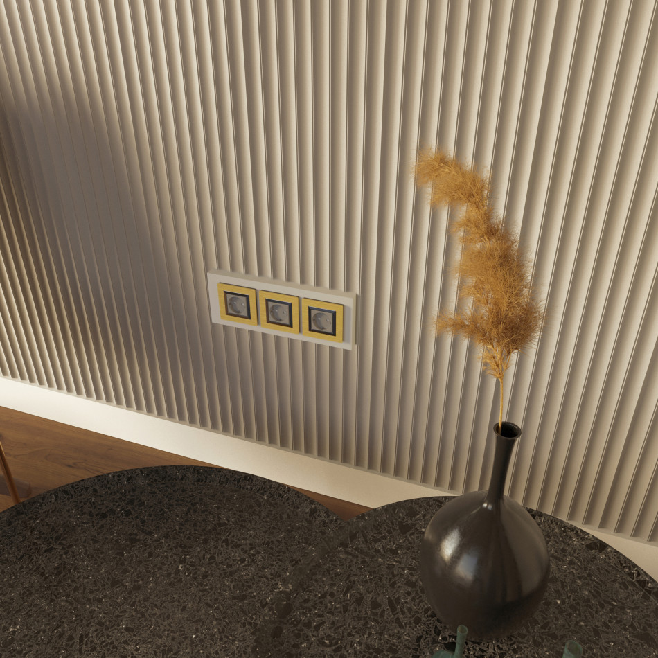 Панелі моделі Dublix - це гіпсові 3d панелі з контрастною формою профілю, канавки спрямовані всередину панелі і розділені між собою каналом трикутної форми. Загалом, панель аналогічна панелі Flute 2, але додаткова канавка дає чіткість формі панелі. Ідеально підходить для невеликих приміщень, наприклад, спальних, дитячих або віталень. Лінійність і витонченість надають панелі легкості. Аналогічно з іншими варіантами, цю панель можна комбінувати, створюючи різноманітність форм і малюнків. Наприклад, можна об'єднати в наборку панелі Dublix і Linea 2.