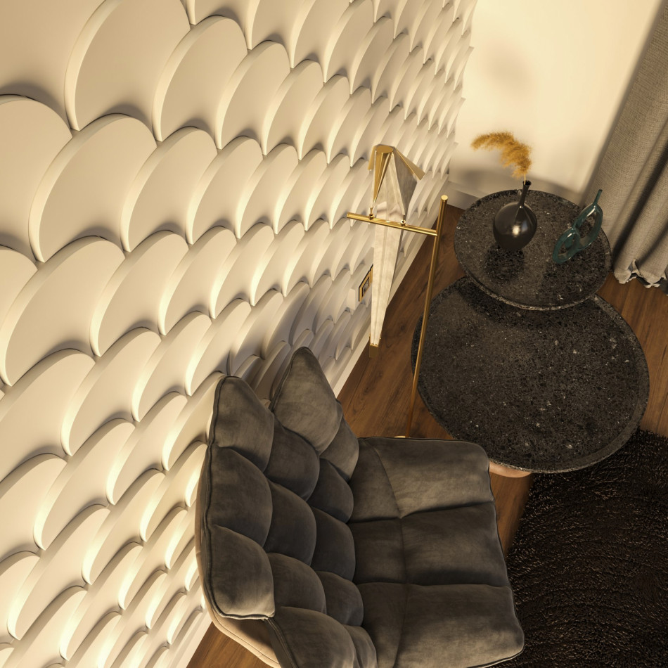 Гіпсові 3D панелі моделі Squama є естетичним і функціональним рішенням для оновлення інтер'єру, додавання текстури та унікальності стінам приміщення. Їхнє розмаїття форм, малюнків і розмірів дає змогу вибрати оптимальний варіант для будь-якого простору, чудово поєднуючись із різними стилями і створюючи затишну атмосферу.