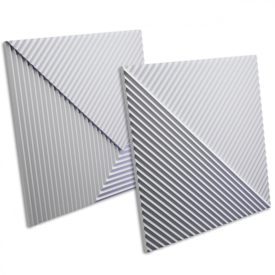 Панель моделі Stripes - це гіпсова 3D-панель у формі квадрата, що пропонує два варіанти виконання. Ця панель може бути встановлена в різних комбінаціях, даючи змогу створювати різноманітні малюнки та композиції. Її форма з особливим малюнком дає змогу повертати та комбінувати панелі на ваш смак.