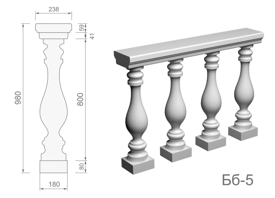 Балюстрада з бетону Бб-5 h980 мм.