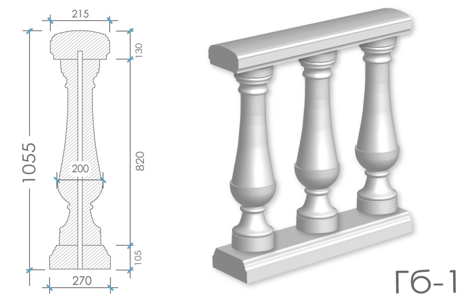 Балюстрада з гіпсу Гб-1 h1055 мм