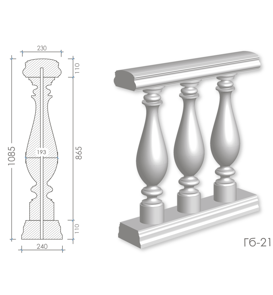 Балюстрада з гіпсу Гб-21 h1085 мм
