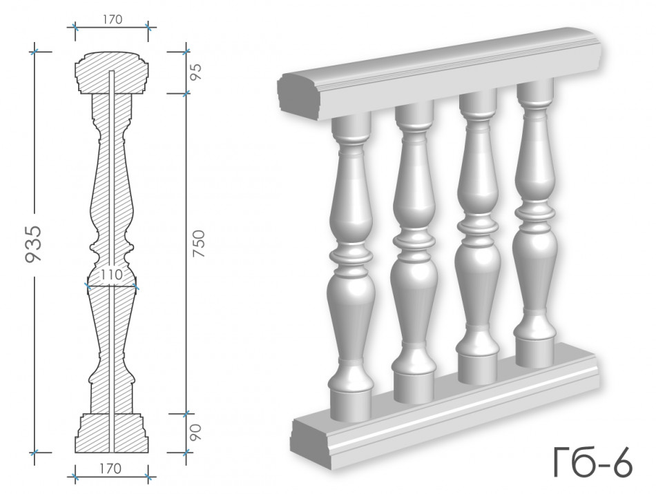 Балюстрада з гіпсу Гб-6 h935 мм