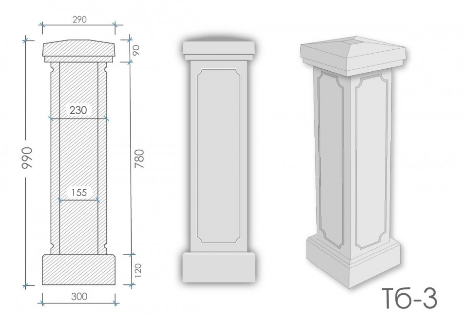 Тумба балюстради Тб - 3 h990 мм