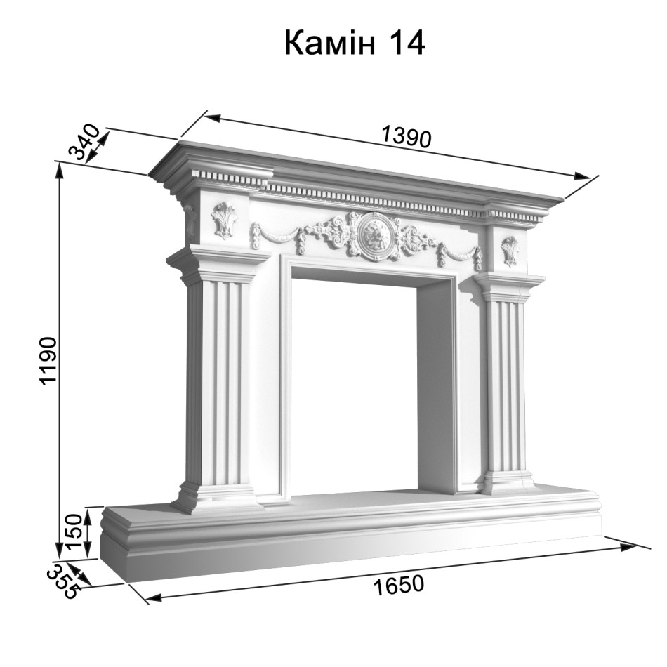 Гіпсовий камін - це класика, що стала невід'ємною частиною інтер'єру. Розміри каміна: висота 1,2 м і ширина 1,65 м. Його стиль - класицизм, що вирізняється елегантним візерунком, що дає змогу йому гармонійно вписатися в будь-який інтер'єр. Камін світлий і легкий за стилем, його можна встановлювати в будь-якому приміщенні, а завдяки невеликим розмірам він впишеться навіть у невелику спальню або дитячу. Камін розрахований на встановлення вздовж стіни, хоча за бажання можна зробити варіант для встановлення у внутрішній кут.