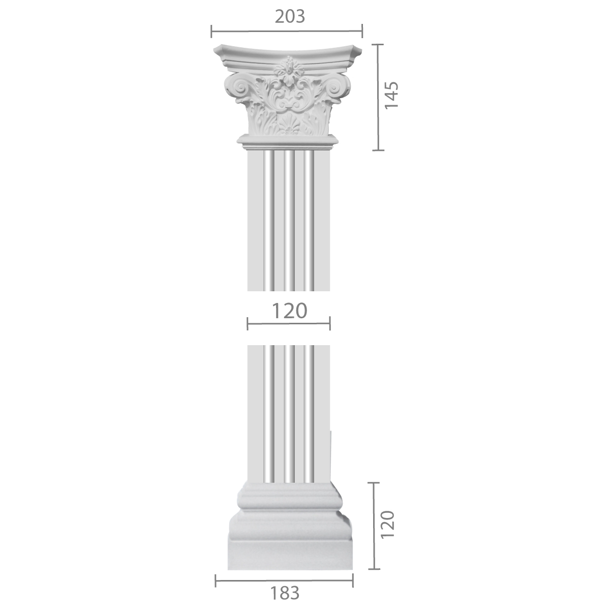Фасадна пілястра Ка-82. Капітель і база виготовляються з бетону. Стовбур з пінополістиролу з цементно-клейовим покриттям.