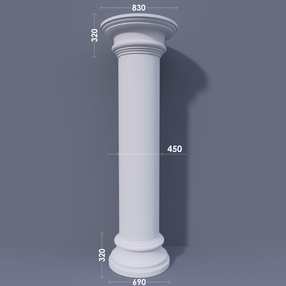 Фасадна колона виготовлена за міжнародними стандартами з використанням високоякісних матеріалів, в основі пінополістирол, завдяки якому виріб має маленьку вагу, надалі позначається в легкому і швидкому монтажі.