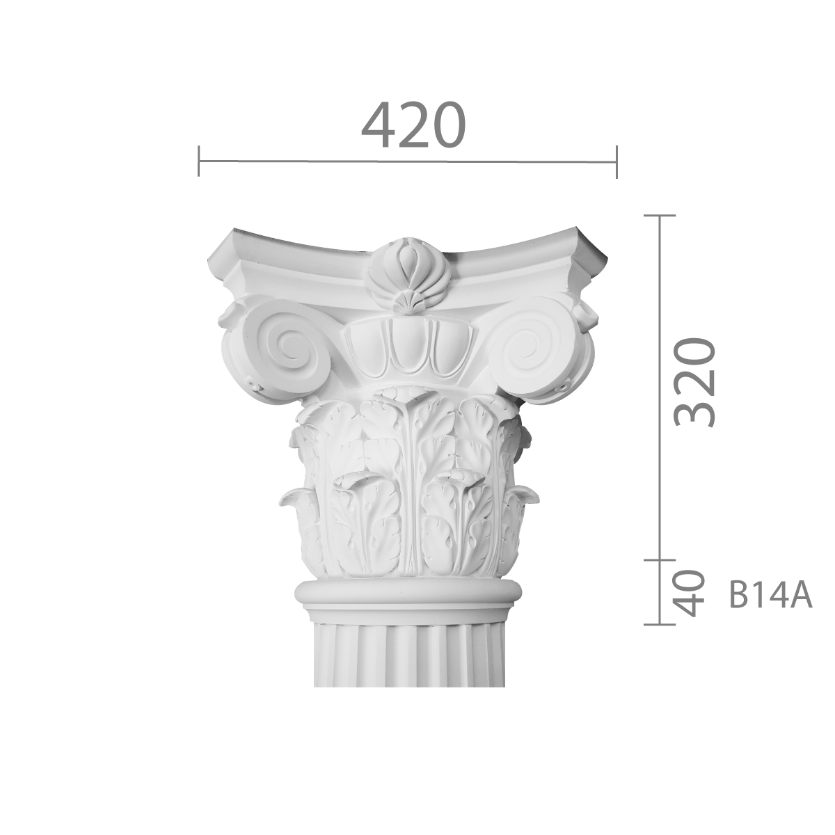 Фасадна колона виготовлена за міжнародними стандартами з використанням високоякісних матеріалів, в основі пінополістирол, завдяки якому виріб має маленьку вагу, надалі позначається в легкому і швидкому монтажі.