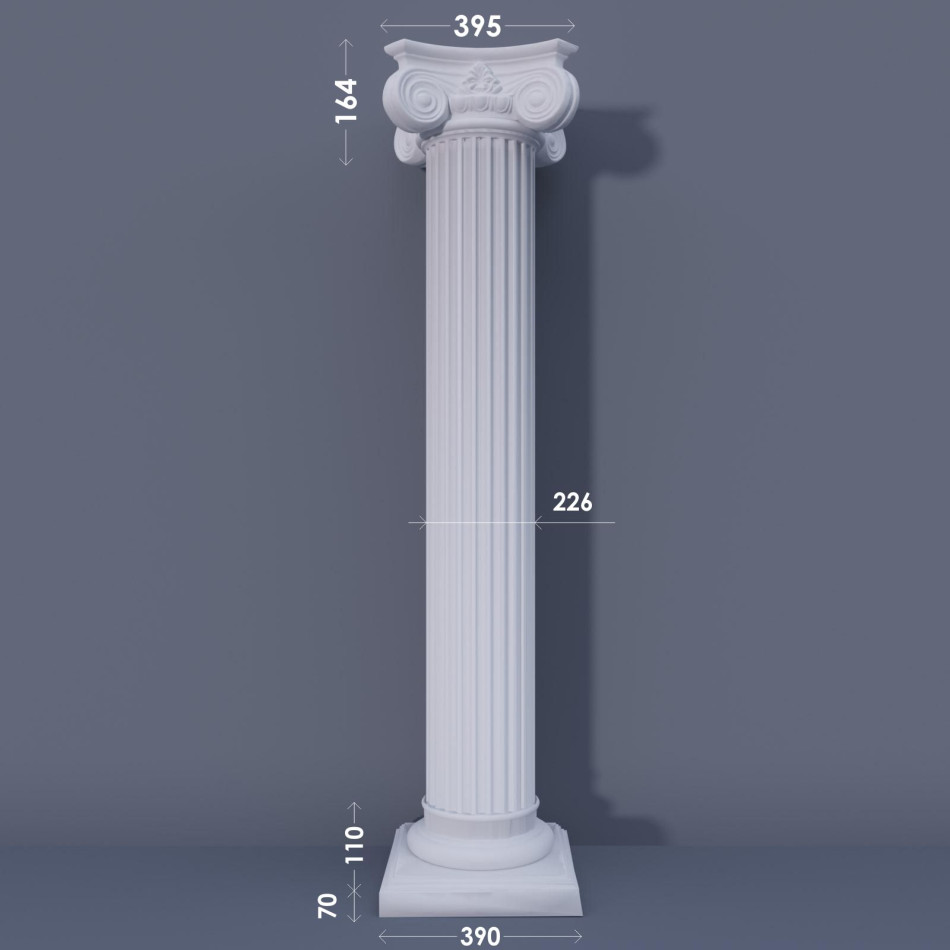 Фасадна колона виготовлена за міжнародними стандартами з використанням високоякісних матеріалів, в основі пінополістирол, завдяки якому виріб має маленьку вагу, надалі позначається в легкому і швидкому монтажі.