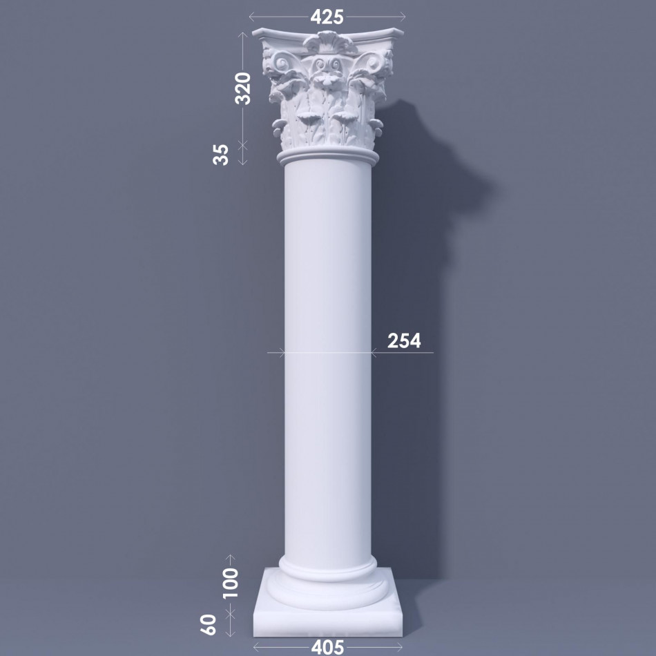 Фасадна колона виготовлена за міжнародними стандартами з використанням високоякісних матеріалів, в основі пінополістирол, завдяки якому виріб має маленьку вагу, надалі позначається в легкому і швидкому монтажі.