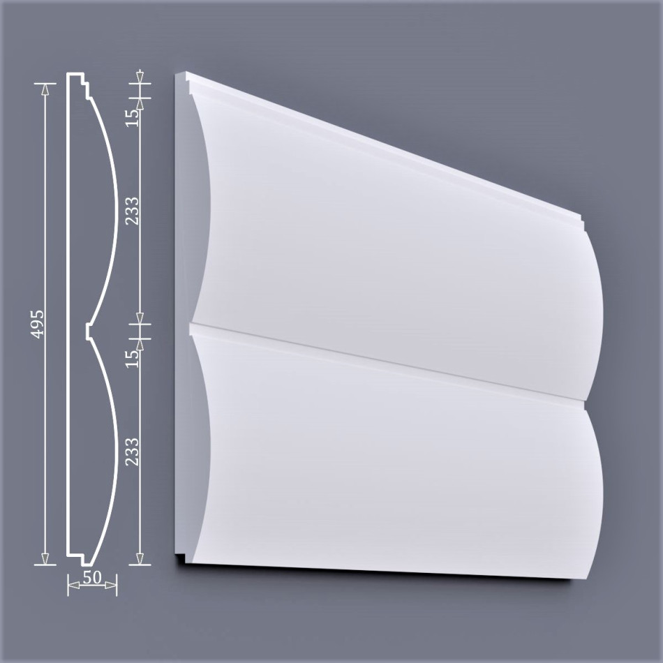 Плита має розмір 495х2000х50 або 100мм, товщина варіюється в залежності до вимог по теплоізоляції. Всі чотири сторони панелі ізосайдингу мають торцеве з'єднання.