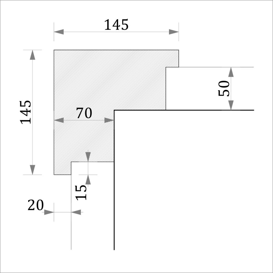 Кут має розмір 145х145х70, товщина варіюється в залежності до вимог по теплоізоляції.