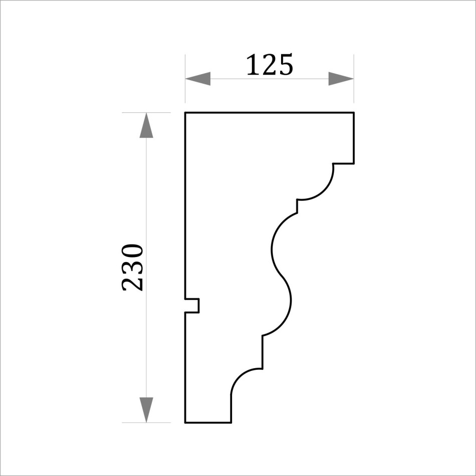 Карниз Фк-25 виготовлений за міжнародними стандартами з використанням високоякісних матеріалів, в основі пінополістирол, завдяки якому виріб має невелику вагу, зручний в монтажі. При виготовленні фасадного карниза на пінополістирол наноситися спеціальний акриловий шар, який надалі не дає тріскатися стикам. Це робить карниз універсальним і практичним декоративним елементом.