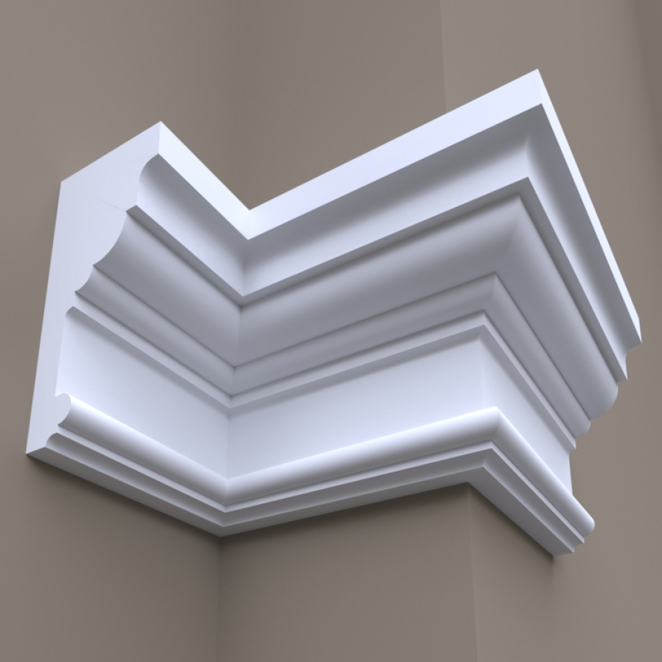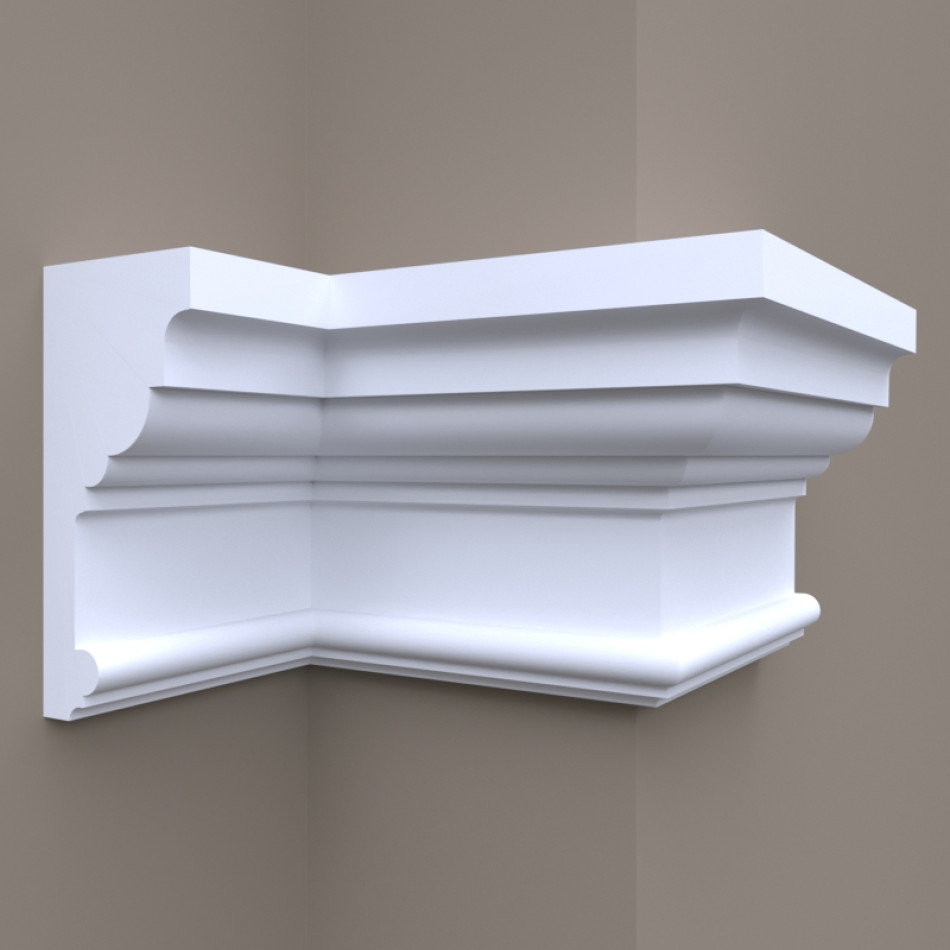 Прекрасний фасадний карниз моделі Фк-9 наділений всіма основними достоїнствами якісного декоративного матеріалу. Його габаритні розміри складають 285х130 міліметрів. До складу виробу входять пінополістирол, захисний шар - акрилове покриття. Така конструкція робить його стійким до деформацій. Також він гарантовано не дасть потріскатися стикам. Згодом модель не втрачає своєї краси і буде служити вам довгий час. Універсальний і практичний, карниз можна кріпити і всередині, і зовні будинків.