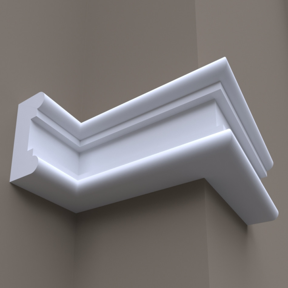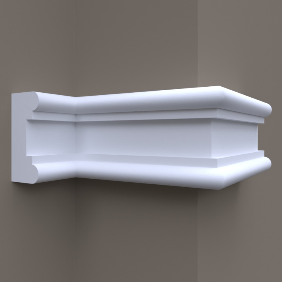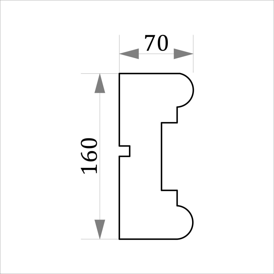 Молдинг з пінопласту-це особливий декоративний елемент у вигляді витонченої накладної планки, яка виступає над поверхнею стіни на кілька сантиметрів. Молдинги широко використовуються для декорації фасадів, прибудинкових територій: оздоблення стін котеджів, а також будь-яких інших споруд, конструкцій з каменю або цегли. Виріб призначений для кріплення на вертикальну поверхню, має армуючий шар, а також вбудовану сітку, що запобігає розтріскування і деформацію. Виготовлено зі стійкого до руйнування, довговічного пінополістеролу. Параметри виробу: висота молдинга - 160 мм, ширина – 70 мм, вихідний колір матеріалів – світло-сірий.