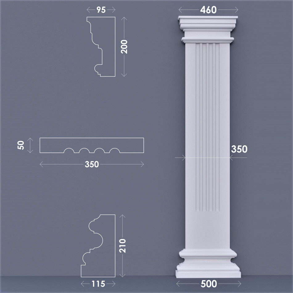 Фасадна пілястра виготовлена за міжнародними стандартами з використанням високоякісних матеріалів, в основі пінополістирол, завдяки якому виріб має маленьку вагу, надалі позначається в легкому і швидкому монтажі.