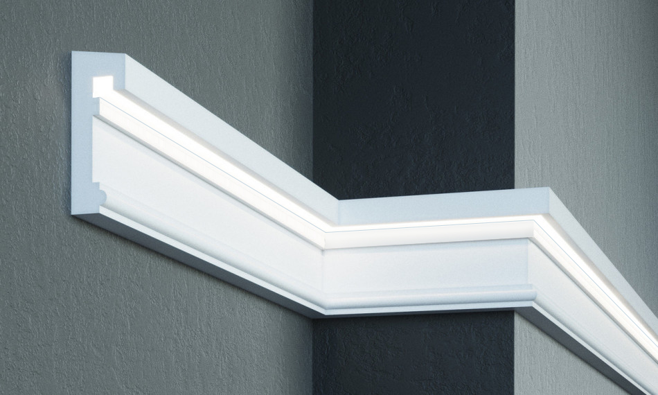 Фасадний світловий карниз-це елегантний спосіб вирішити проблему відсутнього освітлення. У таких карнизах спеціально розраховано простір, в яке прокладається світлодіодна стрічка і в робочому стані вона дає постійне приглушене світло і створює атмосферу затишку і спокою