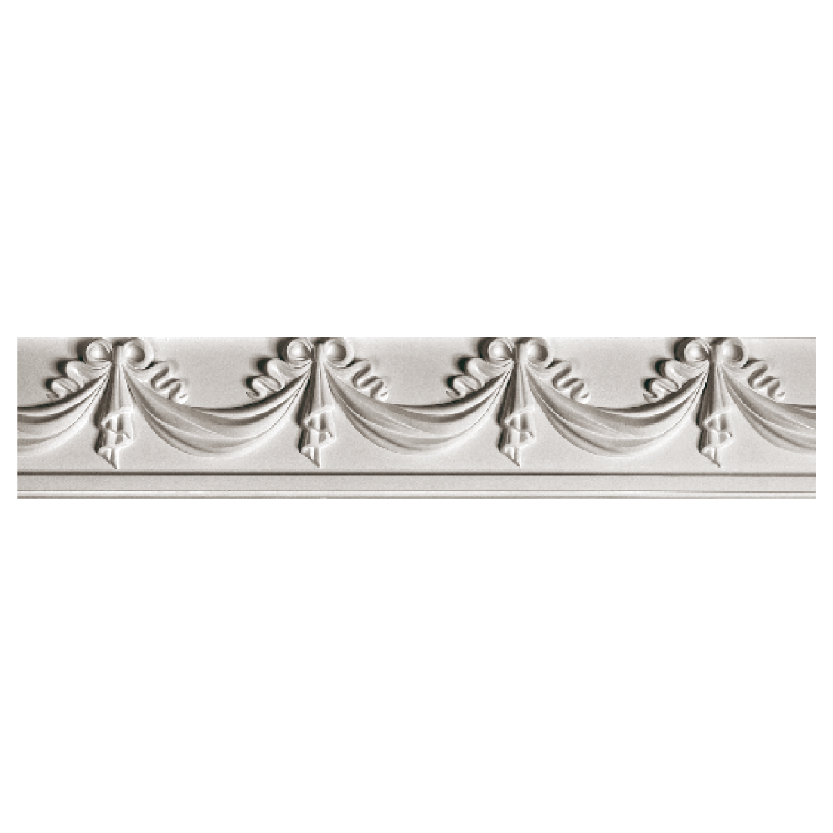 Профіль: Значний, але гармонійний профіль з виразним класичним орнаментом. Створює помітний і шляхетний декоративний пояс, який візуально підносить стелю та додає інтер’єру аристократичної завершеності. Ідеально підходить для ефектного зонування верхньої частини стіни або як розкішне обрамлення під карнизом.