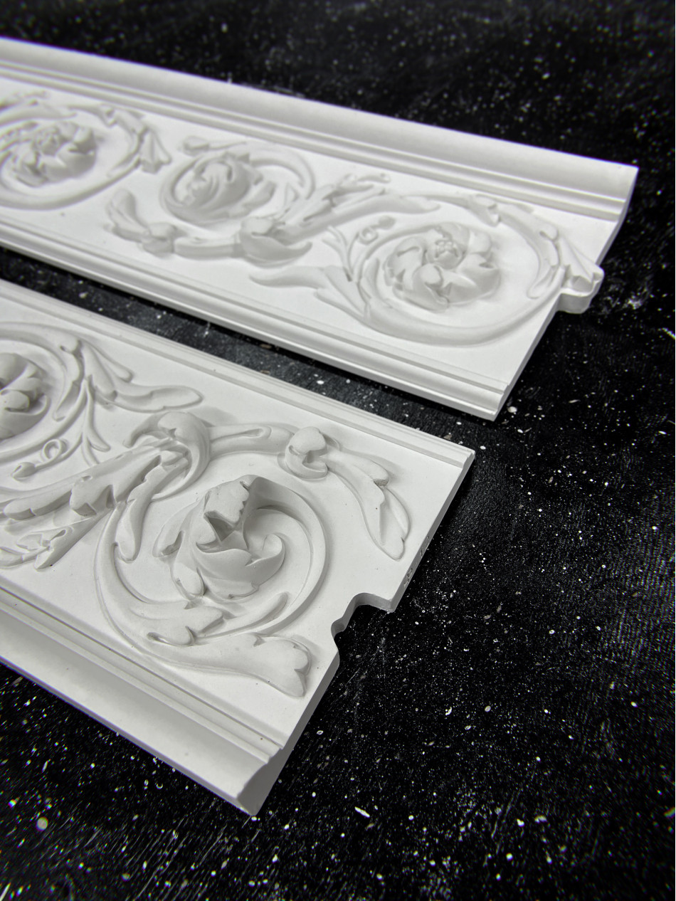 Натуральний білий гіпс без покриття: Матеріал для високоякісного оздоблення, готовий до ґрунтування, фарбування або золочення під палітру найвишуканішого проєкту.