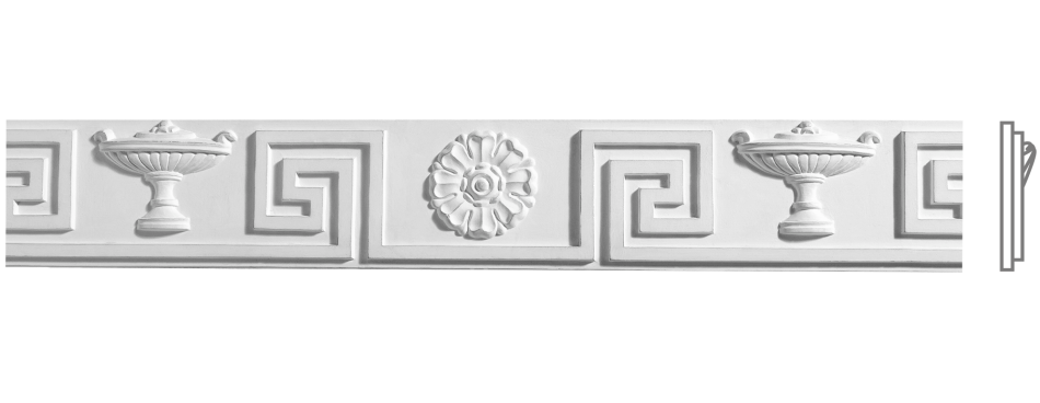Профіль: Елегантний, добре збалансований профіль із класичним, помірно насиченим орнаментом. Завдяки своїй середній висоті, фриз Ф-31 створює виразний, але не домінантний декоративний пояс, що ідеально підходить для фінішного оздоблення кімнат зі стандартною висотою стелі. Додає інтер'єру чіткості та благородної структури, не обтяжуючи простір.