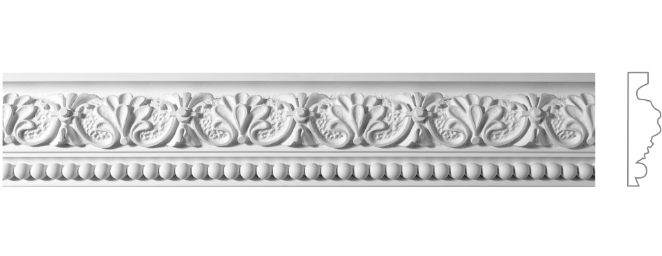 Профіль: Класичний, добре помітний профіль із чітким та елегантним орнаментом. Його висота 110 мм створює збалансований і виразний декоративний пояс, що ідеально підходить для фінішного оздоблення кімнат із типовою висотою стелі. Ф-38 надає інтер’єру глибини та історичної витонченості, формуючи акуратну архітектурну межу між площинами.