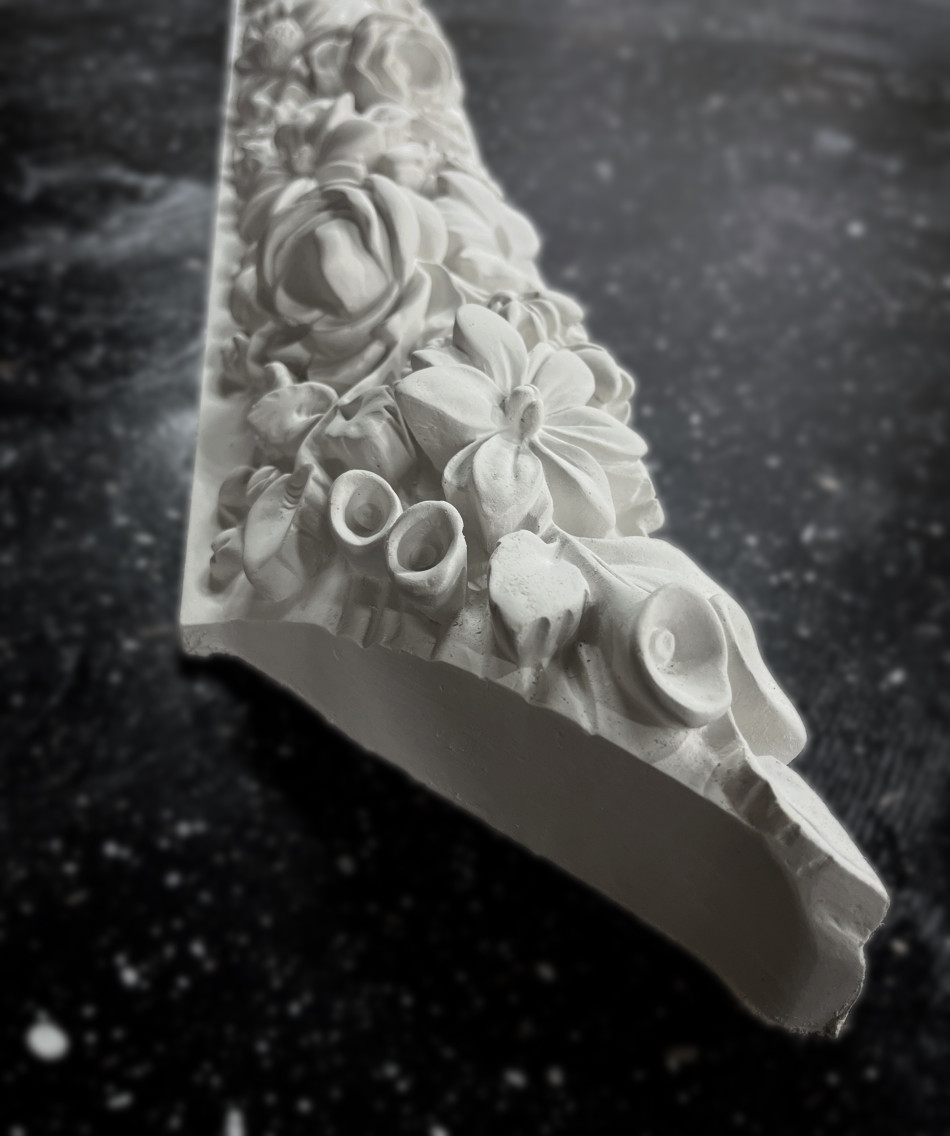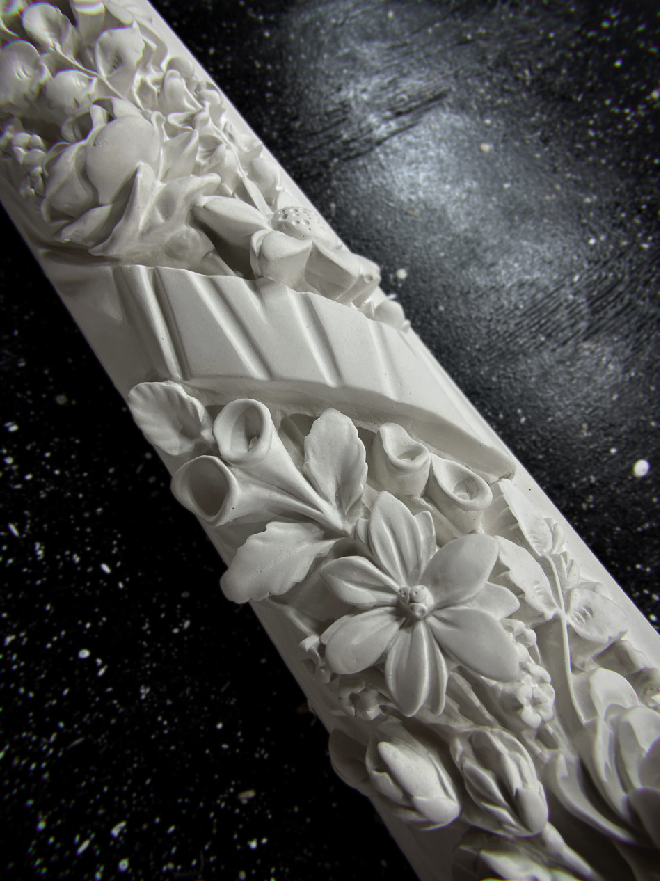 Натуральний білий гіпс без покриття: Якісний матеріал для ліпнини, готовий до ґрунтування та фарбування під будь-яку кольорову палітру проєкту.