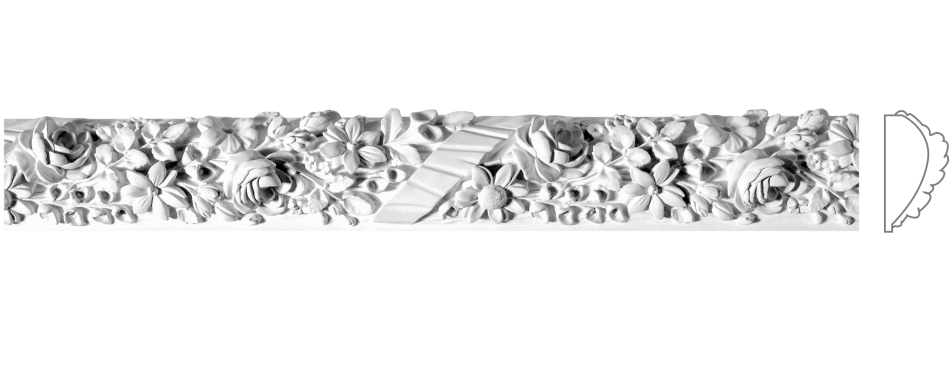 Профіль: Стриманий, елегантний профіль із чітким, класичним орнаментом. Його висота 105 мм створює збалансований декоративний пояс, що ідеально підходить для фінішного оздоблення кімнат із типовою висотою стелі. Ф-54 додає інтер'єру класичної структури та акуратної світлотіні, залишаючись при цьому досить делікатним елементом.