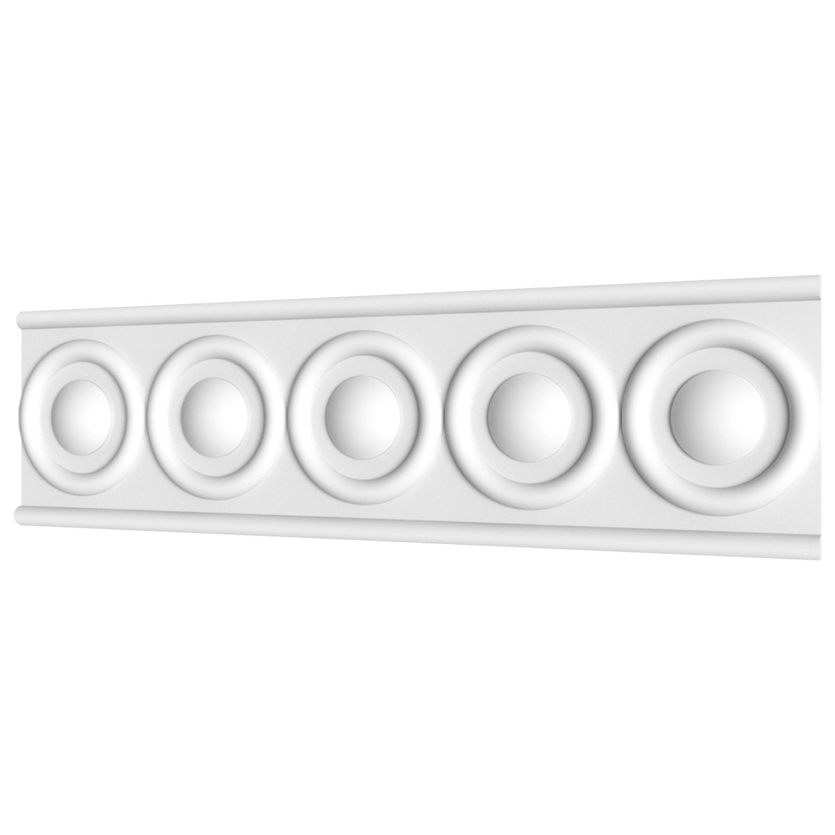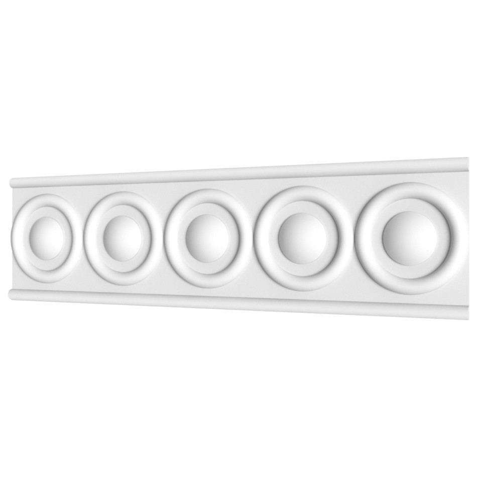 Ф‑73 — орнаментований фриз висотою 120 мм із послідовним рядом великих рельєфних кіл. Такий об’ємний рисунок відсилає до архітектурних мотивів античності та неокласики, де ритм і форма створюють відчуття гармонії. Масивний профіль виглядає монументально, але залишається елегантним завдяки чіткості ліній і пропорцій.