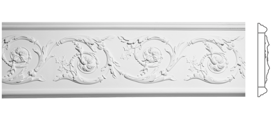 Ф‑85 — гіпсовий фриз висотою 334 мм, із рельєфом, що складається з витонченого рослинного плетива та плавних завитків, які формують гармонійні медальйони. Глибокий рельєф створює гру світла та тіні, додаючи простору фактурності й архітектурності.