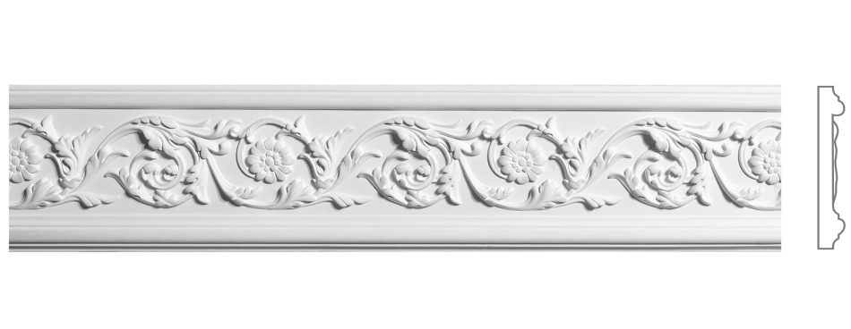 Ф‑89 гармонійно комбінується з карнизами, молдингами або пілястрами Ermitage Decor. Підходить для оформлення як горизонтальних поясів, так і вертикальних вставок, створюючи довершений класичний образ інтер’єру.