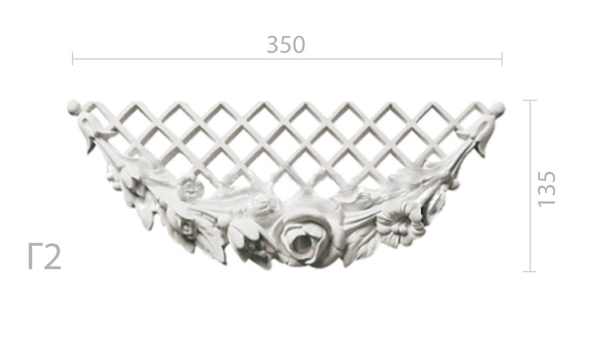 Розміри вироби 350х135, крім самої гірлянди до складу композиції входить витончена ґратчаста площина, що додає декору елегантності. Щоб отримати таку красу, досить зробити замовлення онлайн або по телефону - гіпсова гірлянда з листя Г-2 (Харків) буде виготовлена в максимально стислі терміни. Телефонуйте прямо зараз, ми з радістю відповімо на всі ваші запитання.