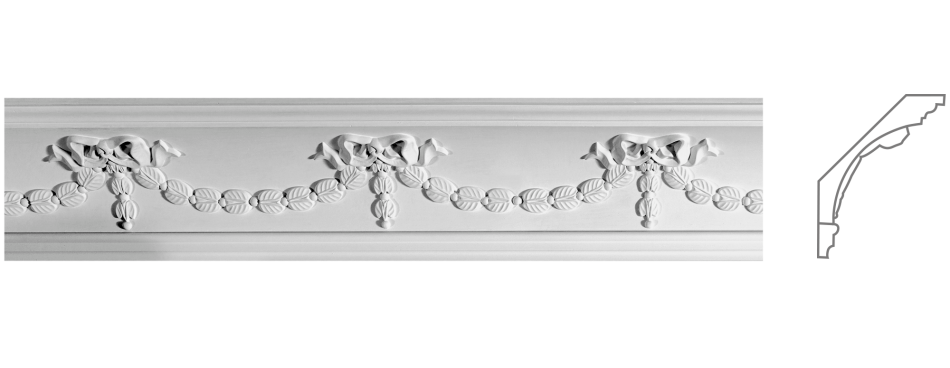 Карниз із гіпсу К‑105 — класична стрічка з декоративними гірляндами