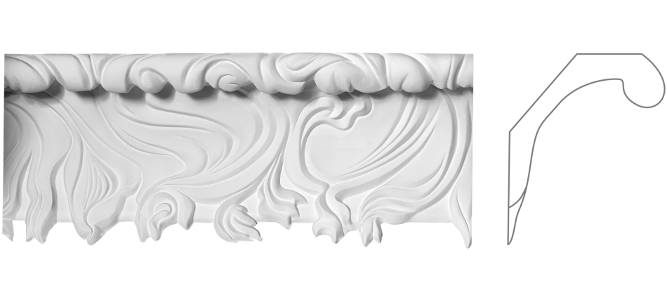 Карниз К‑128 надає інтер’єру руху, легкості та артистичності. Його хвилястий рельєф створює ефект живої пластики, додаючи приміщенню глибину, м’якість і благородний характер.