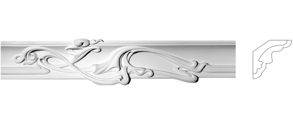 Карниз К‑134 додає простору пластичності, плавності та легкості. Його хвиляста форма створює відчуття руху, наче візерунок оживає на стіні чи стелі — це акцент, що перетворює інтер’єр на витвір мистецтва.