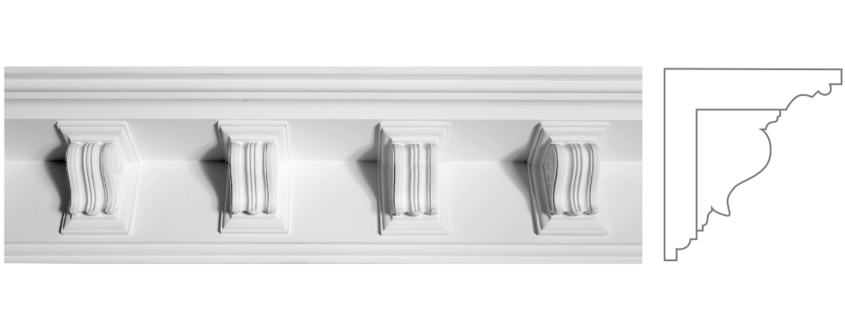 К‑160 — гіпсовий карниз висотою 110 мм і шириною 115 мм, прикрашений ритмічним орнаментом із масивних кронштейнів (модульйонів) та класичних мотивів. Це могутня архітектурна форма з глибокою пластичністю, яка нагадує класичну архітектуру та традиційні архітектурні ордери.